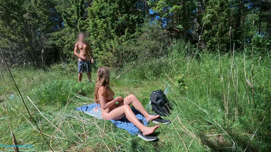 Делюсь женой на нудистском пляже, пока муженек снимает видео, юную шлюшку трахает случайный мужик на нудистском пляже